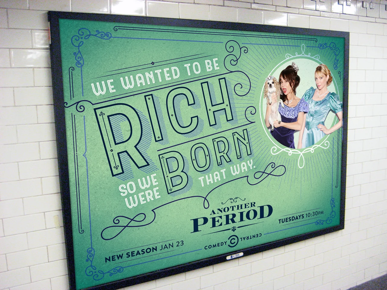 Another Period is a satirical take on reality tv and topical issues in the turn of the 20th century. We used existing photography of the main characters as well as dynamic typography to incorporate the voice of the show in the season 3 key art.