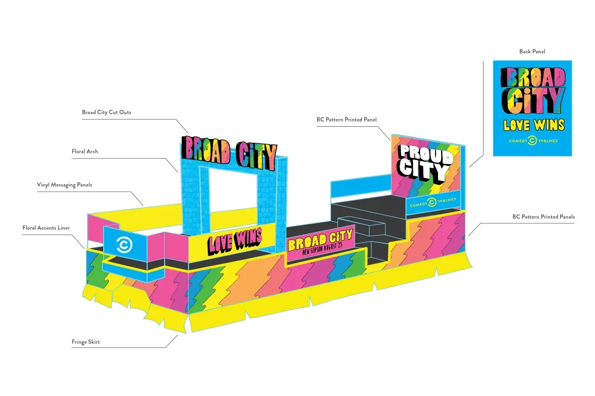 Using the tone of the show and illustrated assets by Mike Perry, we honored NYC PRIDE with supportive messaging, bright colors, and a party on wheels. Here’s a little trip down the road from sketch to finished float.