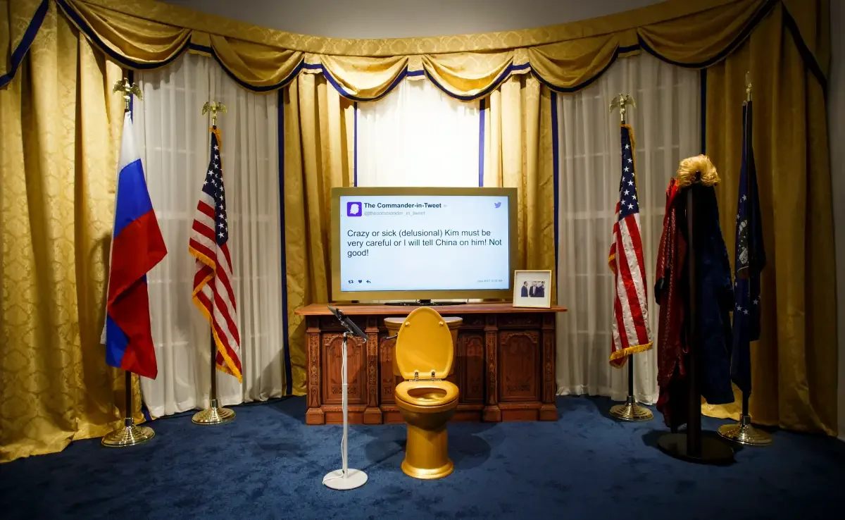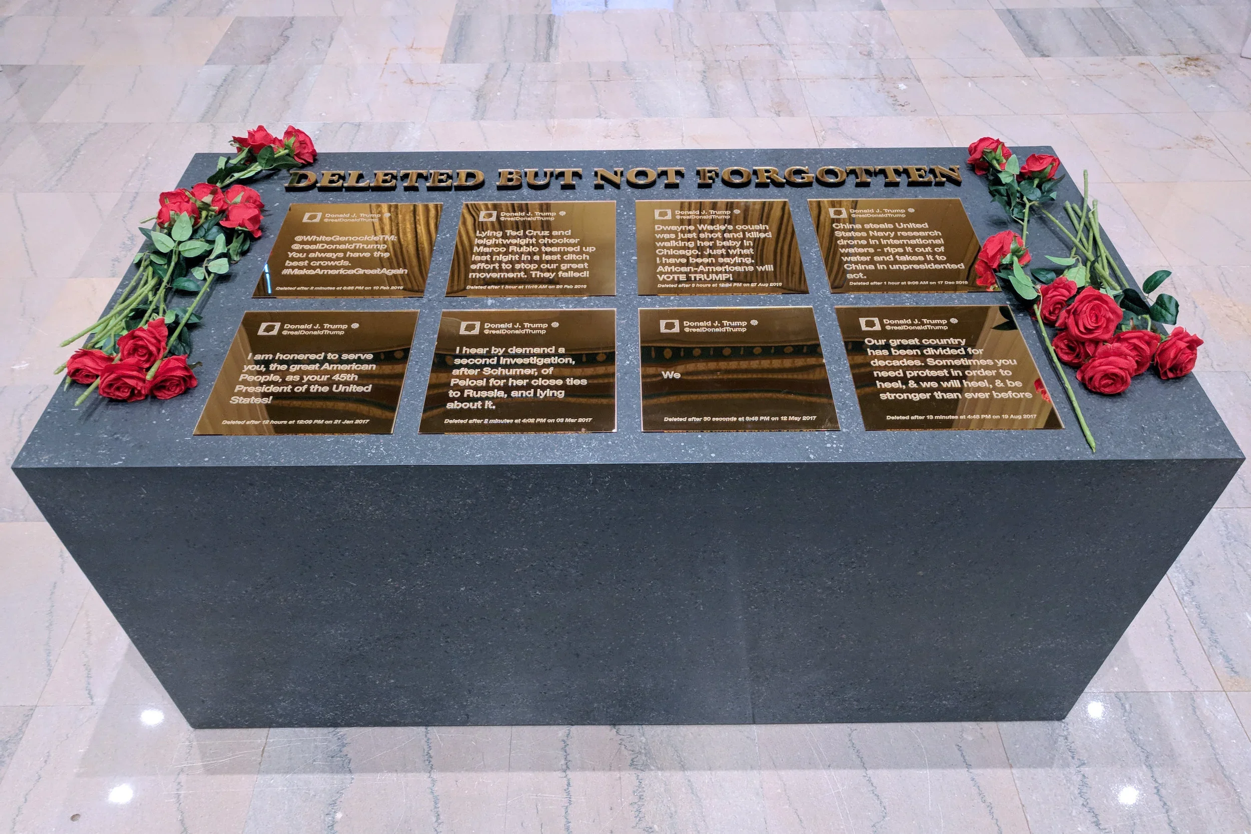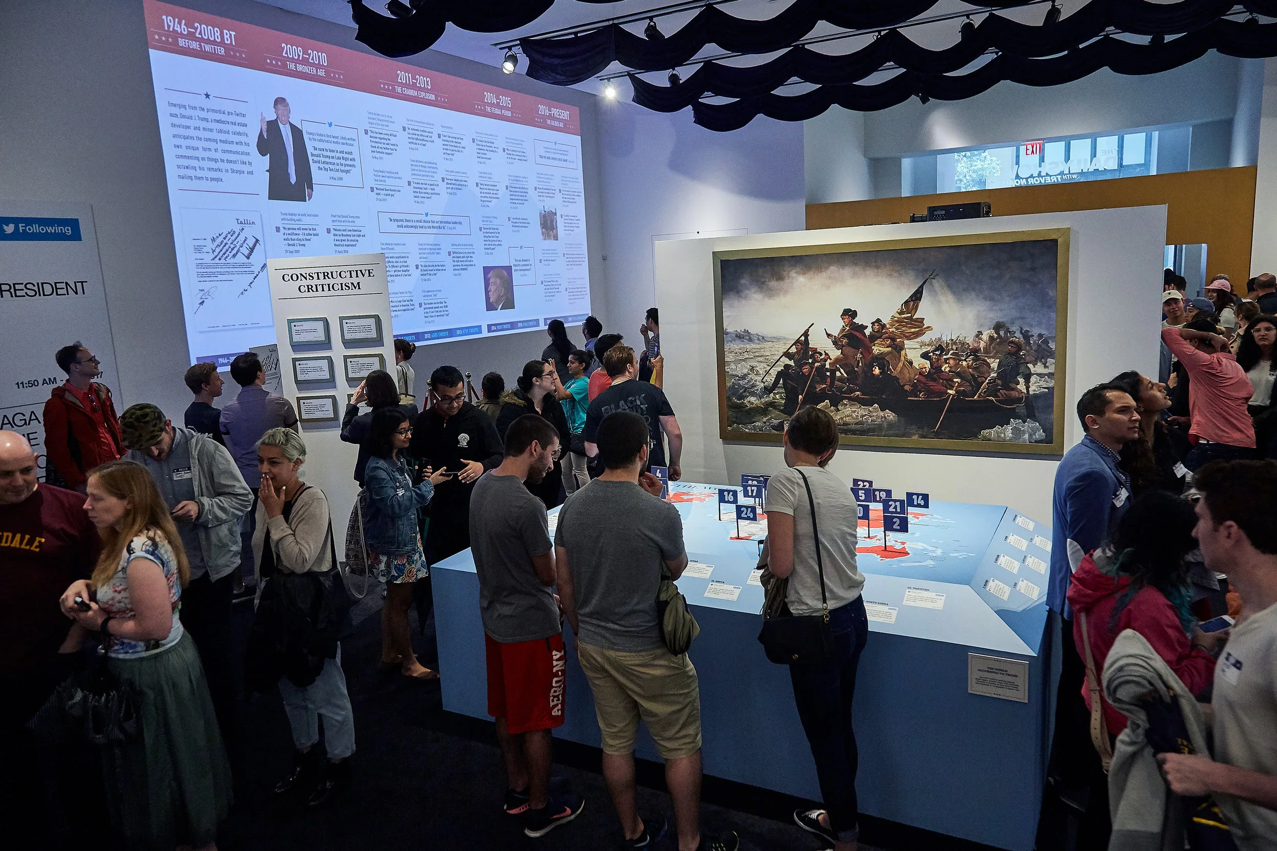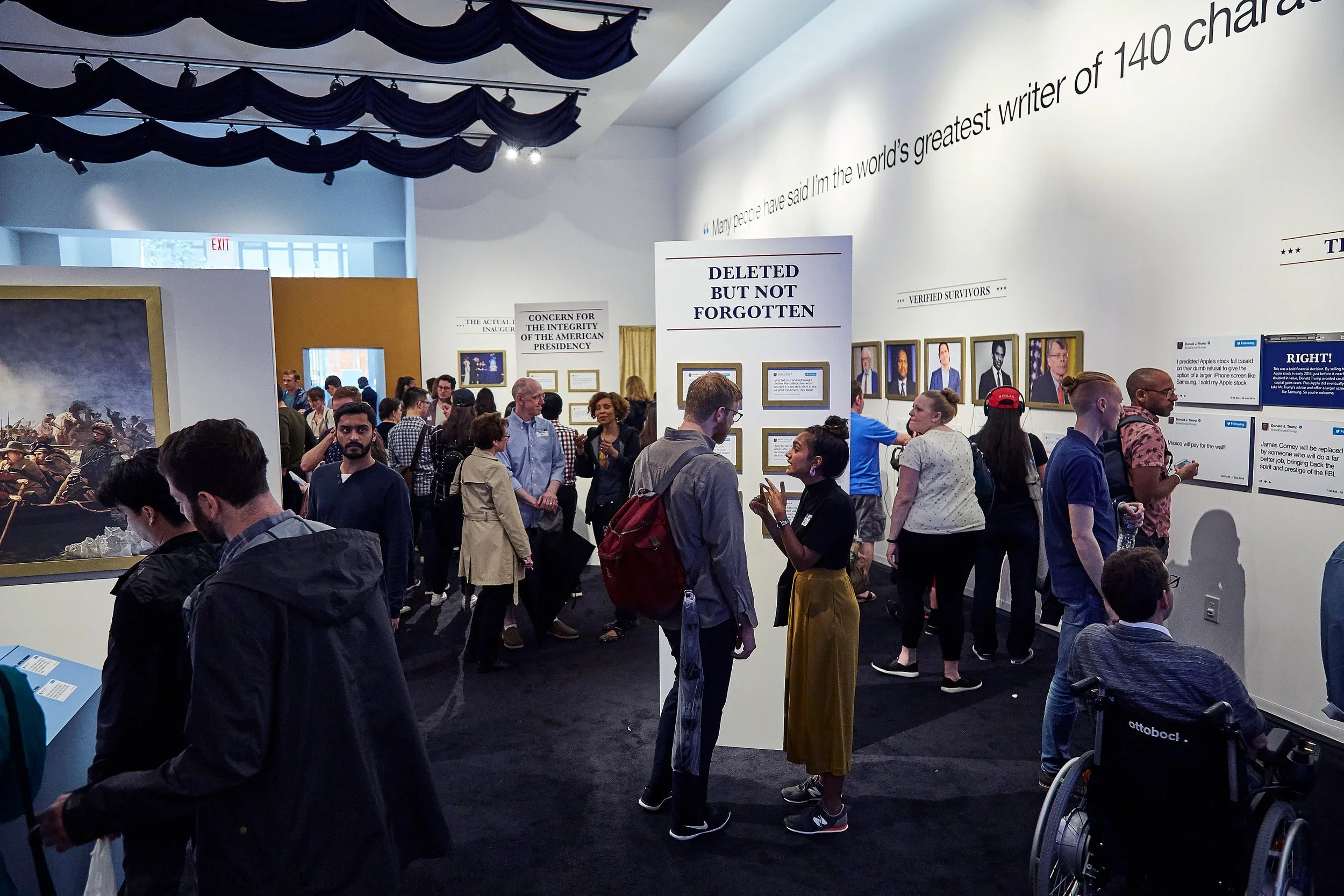 The Donald J. Trump Presidential Twitter Library is a traveling exhibition of the 45th (and final) President’s most important documents - his tweets. Included in the experience is a gold toilet you may tweet from, a nickname generator, a very extensive timeline of tweets, and more! Couldn’t make it in person? Check out our published book.