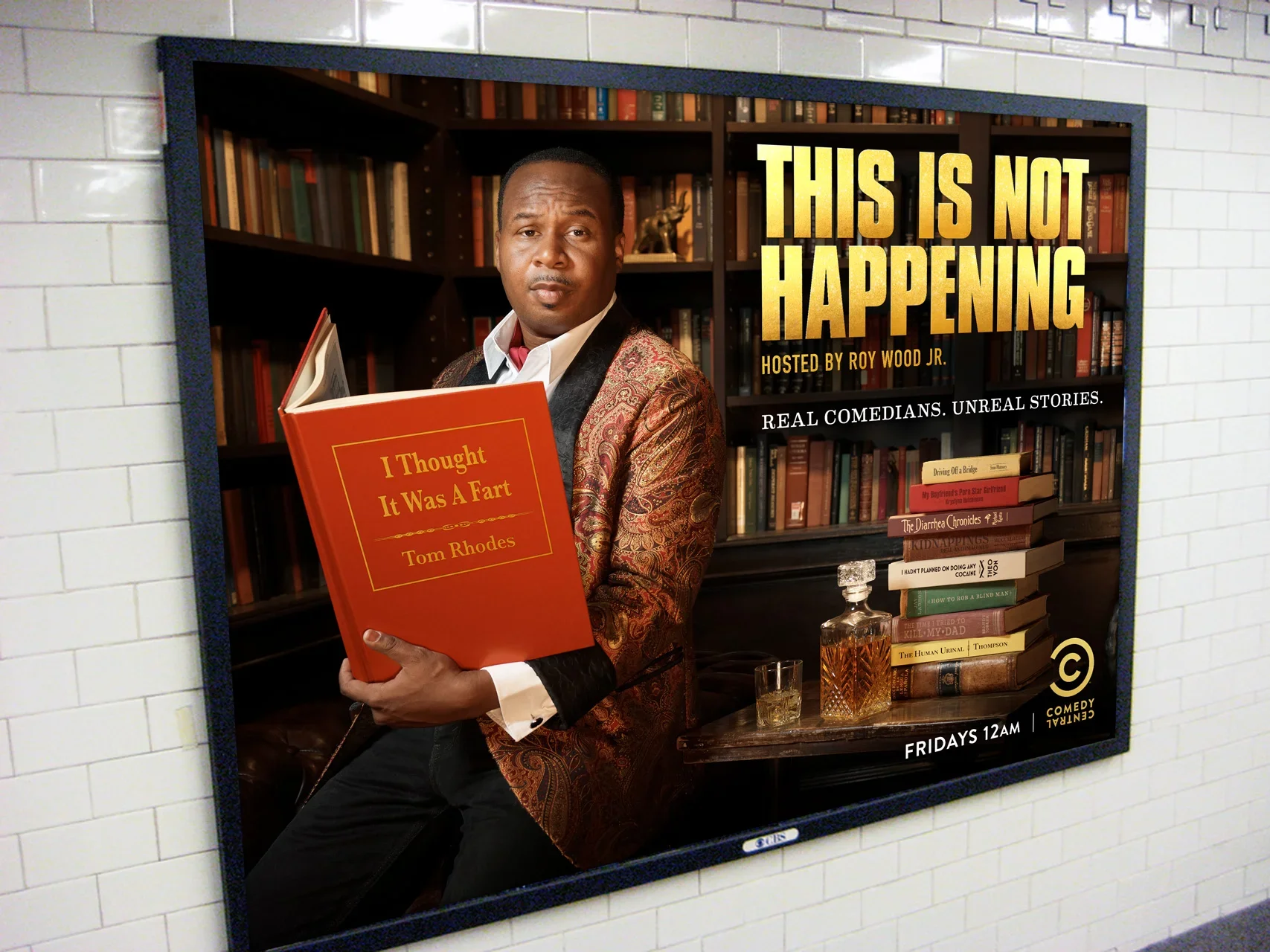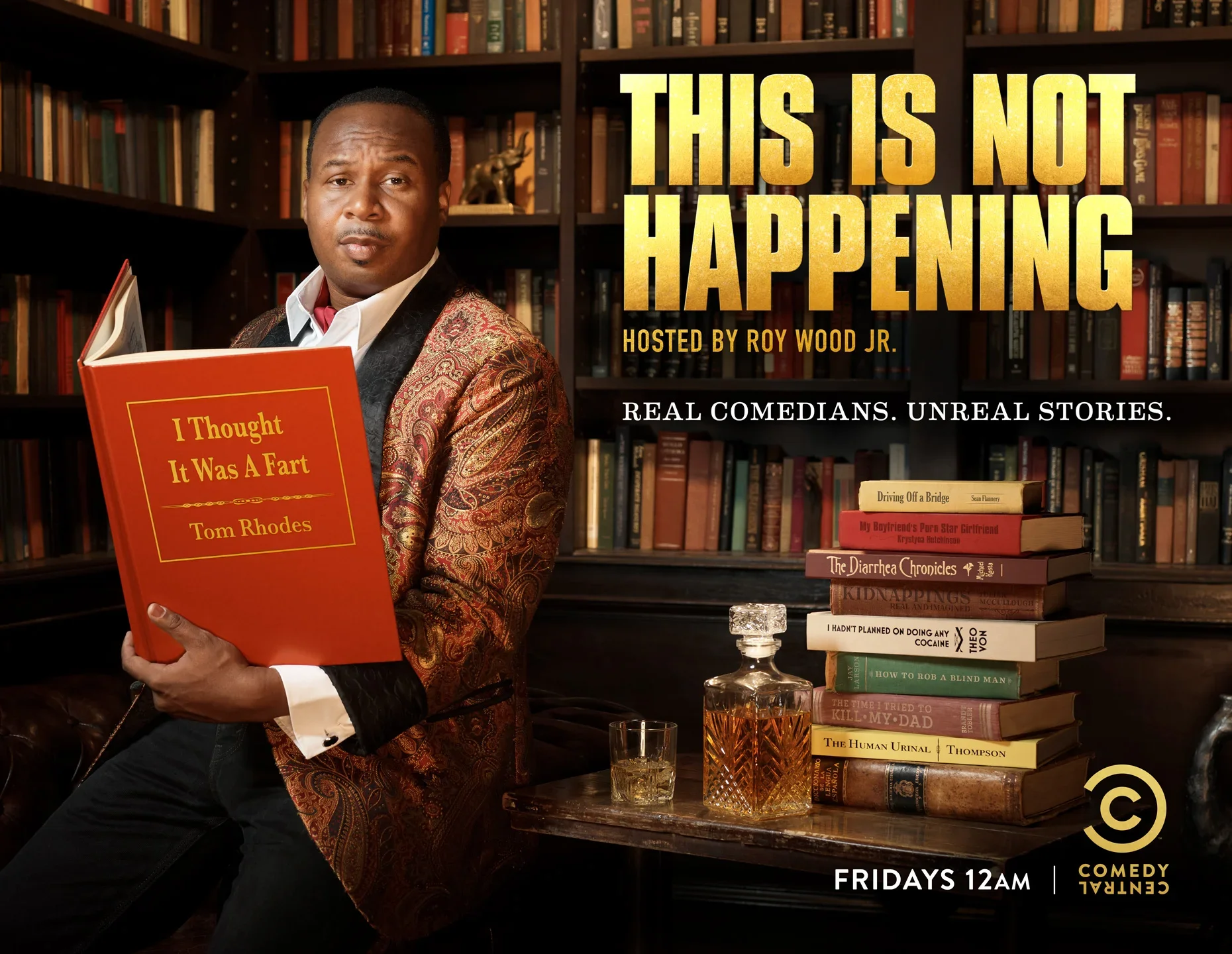 THIS IS NOT HAPPENING is all about storytelling. To capture the show’s premise, we shot our host, Roy Wood Jr., in a mahogany library enjoying some comedic literary classics.